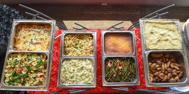 We offer a wide variety of salads, entrees and sides to create your own buffet. Here is an example of a well-rounded dinner buffet menu. Choose one salad, two entrees, two or three sides, and roll.