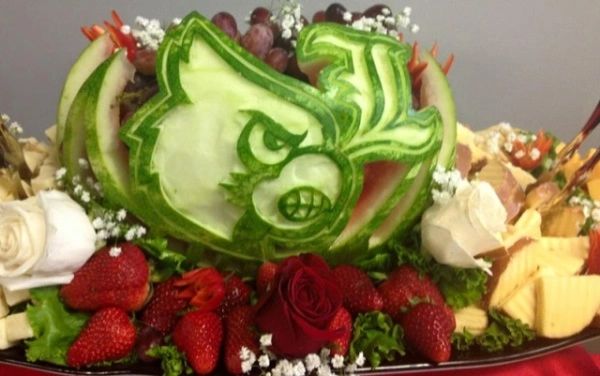 Hand Carved Watermelon Baskets filled with fresh cut fruit